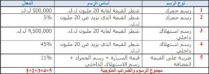 جدول يبين كيفية احتساب الرسوم والضرائب المتوجبة عن السيارات المستعملة المصدر (موقع الجمارك الرسمي)