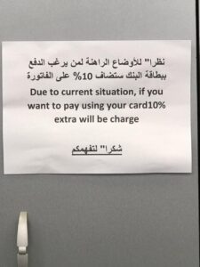 توقفت معظم “السوبرماركت” تماماً في لبنان عن قبول الدفع ببطاقات الاعتماد. يذكر أنّ قسماً ضئيلاً من التعاونيات لا يزال يقبل بدفع 50% من قيمة فاتورة المواطن ببطاقة الاعتماد على أن يتمّ دفع المبلغ المتبقّي كاش، في حين ان قسماً اخر يقوم بإضافة 10% على الفاتورة المدفوعة كاملة ببطاقة الاعتماد!