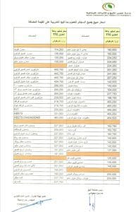 وجاءت الأسعار الجديدة على الشكل التالي: